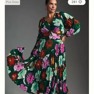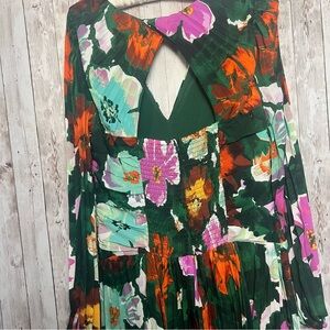 Anthropologie Floral Pleated V-Neck Long Sleeve Dress 14