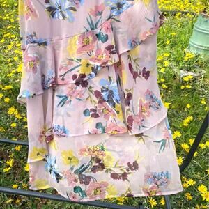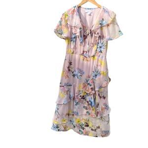 Anthropologie | Floral Print Pink Flowing Dress Boho Med