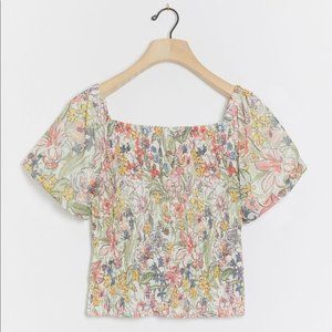 Anthropologie Floral Printed Smocked Puff Sleeved Top (NWT)