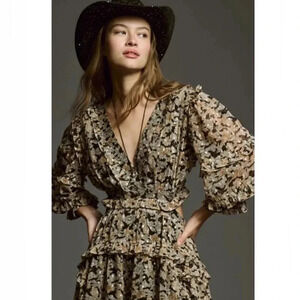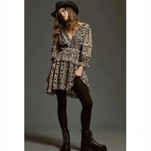 Anthropologie Floral Ruffle Cutout Boho Mini Dress Size Small
