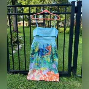 Gorgeous anthro floral foldover sleeveless dress. Never been worn, with tags attached. Cotton, elastane; polyester, elastane lining