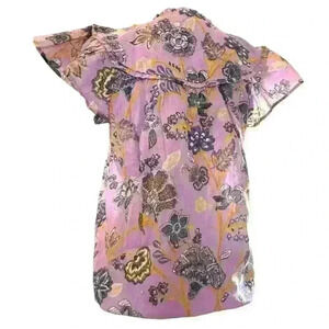 This blouse is a feminine and chic purple floral smocked ruffle short sleeve blouse/top by Anthropologie. It is perfect for those who enjoy well made light and breezy clothing with natural fabrics. Although it’s extra small, the design is appropriate for small and even certain medium body types and is even more beautiful in real life!
