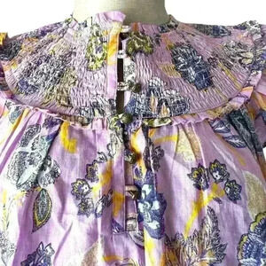 Anthropologie Floral Smocked Ruffle Short Sleeve Blouse XS
