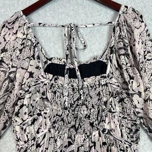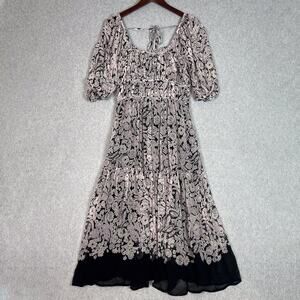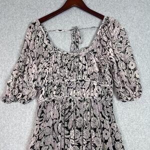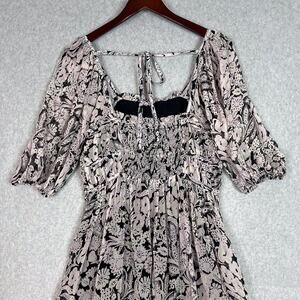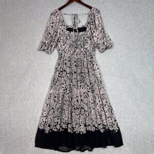 Anthropologie Floral Square Neck Smocked Short Sleeve Midi Dress Size Small