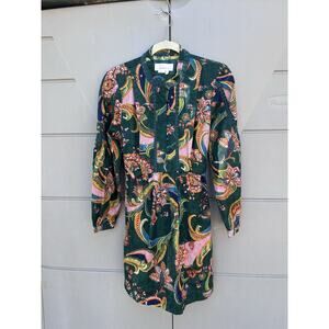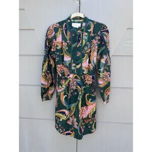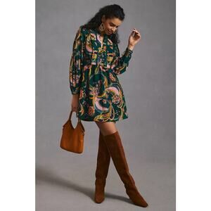 Anthropologie Floral Tunic Mini Dress Sz MP Button Tie Back Boho Prairie Vacay