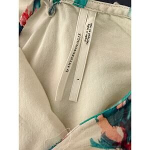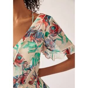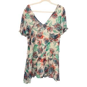 Anthropologie Floral V-Neck Ruffle Mini Dress L Boho Summer Party Outfit Pastel