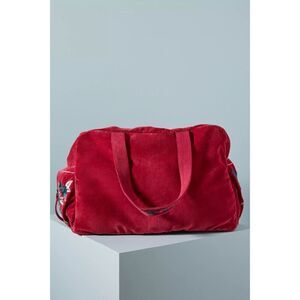 Anthropologie Floral Velvet Weekender Bag Pink Blue Embroidered NEW