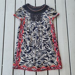 Anthropologie Floreat Black White Print Short Abelia Shift Dress, women's size Medium