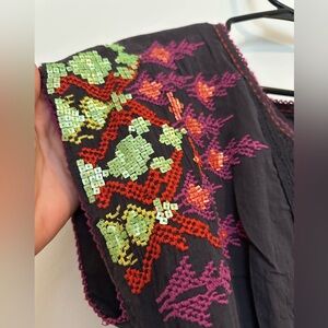 Anthropologie Floreat Boho dark gray embroidered short sleeve