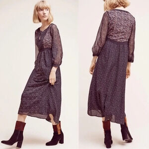 Anthropologie Floreat Country Side Mixed Print Prairie Maxi Dress