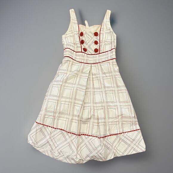 Anthropologie Floreat Dress 2 Embroidered Sleeveless Ivory Red VTG Look!