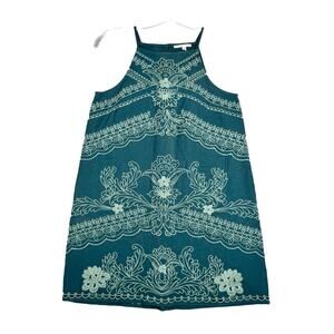Anthropologie Floreat Dress Womens 4 Green Embroidered Sundress Boho Peasant
