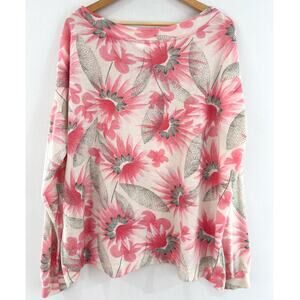 Anthropologie Floreat Floral Sweater Large Long Sleeve Brushed Fleece Boat Neck