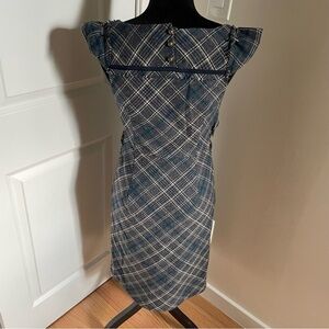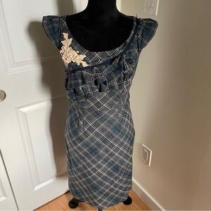 Anthropologie Floreat Gray Blue Plaid Wool Poly Blend Ruffle Dress EUC Size 2
