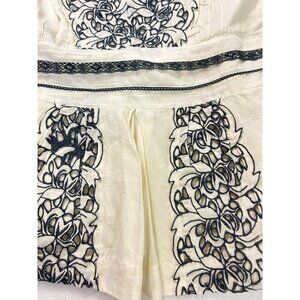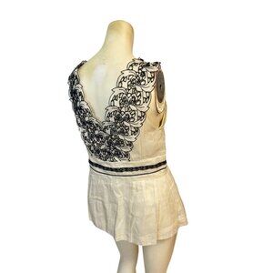 Anthropologie Floreat Ivory & Black Embroidered Sleeveless Blouse Top size 8 10