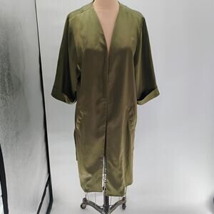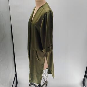 Anthropologie Floreat Kimono One Size Satin Floral Embroidered Open Front Green