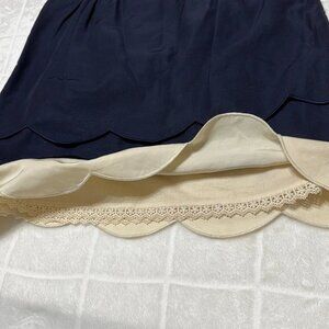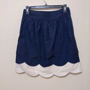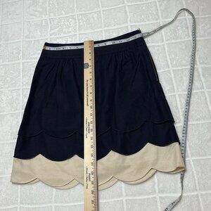 Anthropologie Floreat Navy Blue and Off White Scalloped Mini Skirt