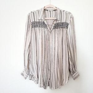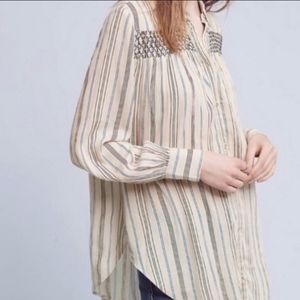 Anthropologie Floreat Norfolk Striped Smocked Button Down Longsleeve Tunic Small