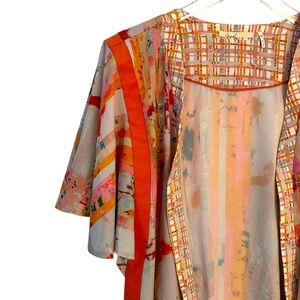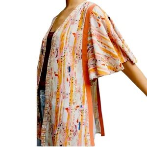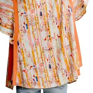 Anthropologie Floreat | Orange & Ivory Striped Boho Kimono Sleeve Top One Size