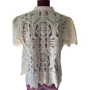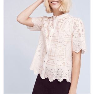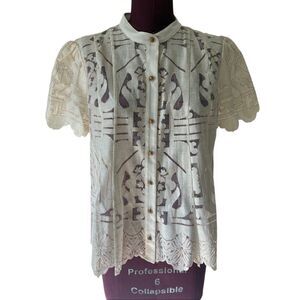 Anthropologie Floreat Sagesse Lace Button Front Blouse size 6 Cream