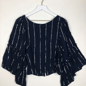 Anthropologie Floreat Silver/Navy 3/4 Bell-Sleeve Blouse