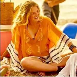 Anthropologie Floreat Sunglow Beachy Embroidered Caftan Sheer Poncho Size Medium