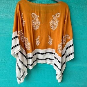 Anthropologie FLOREAT lightweight Mixed Media Print embroidered Poncho Caftan