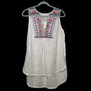 Anthropologie Floreat Tank Top Womens 8 Boho Floral Embroidered Sleeveless Peasant Hippie Beachy Flowy Hi-Low Hem Tunic NWT