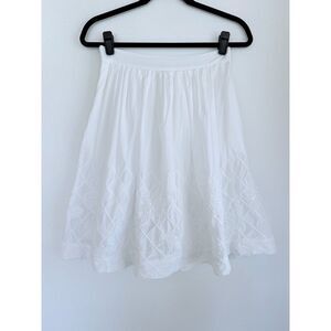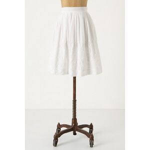 Anthropologie Floreat White Trilliums Embroidered Full Skirt in White Size 6