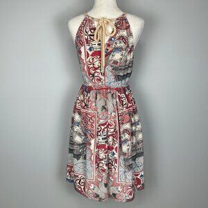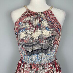 Anthropologie Floreat Womens Castle Lake Silk Dress Halter Rope Tie size Small