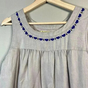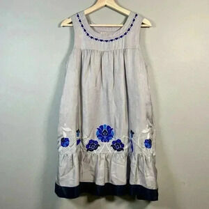 This Anthropologie Floreat dress is a stunning addition to any wardrobe. The gray color and floral pattern make it perfect for a variety of occasions, including travel, weddings, parties, and casual outings. The sleeveless design and crew neck create a comfortable and flattering fit, while the ruffle and embroidered accents add a touch of elegance.