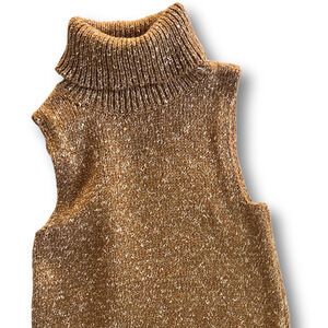 The Anthropologie Flowy Maxi Knit Honey Sweater Tunic Top is a stylish and versatile addition to any woman's wardrobe. This sweater tunic features a flowy design and a maxi length, perfect for layering over leggings and outfit pieces during various seasons. Made with a knit construction, it provides both comfort and warmth. The honey color adds a touch of sweetness to any ensemble, making it a must-have for any fashion-forward woman.