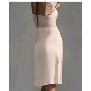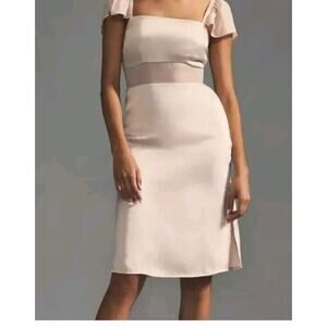Anthropologie Flutter-Sleeve Satin Sheath Dress Cream Size 10 New
