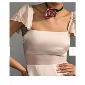 This Anthropologie dress is a stunning addition to your wardrobe. With its flutter sleeves and square neckline, it is perfect for any formal occasion. The dress is made of satin fabric and comes in a beautiful ivory color that is sure to turn heads.