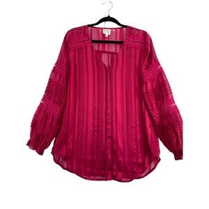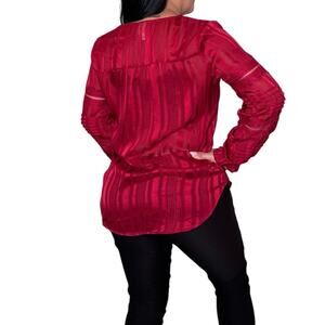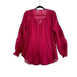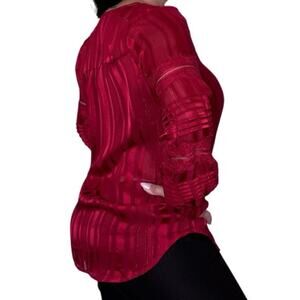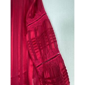 Anthropologie Fly & Flower Sheer Boho Blouse M Red Lace Sleeve Button Front Top