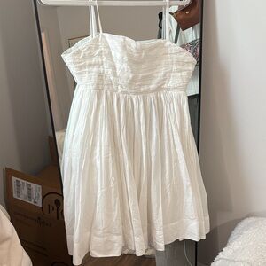 Chic white mini dress with a ruched bodice. Perfect for summer outings. Lightweight and stylish. Small flaw cannot be seen when on. See photos