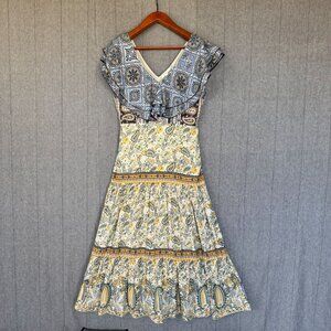 Anthropologie Forever That Girl Cotton Paisley Ruffle Collar Tiered Maxi Dress Size Large