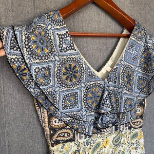 Anthropologie Forever That Girl Cotton Paisley Ruffle Collar Tiered Maxi Dress