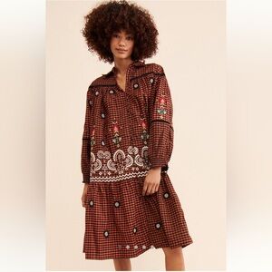 Anthropologie Forever That Girl Embroidered Check Dress Size Small