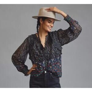 Anthropologie Forever That Girl Metallic Sheer Blouse