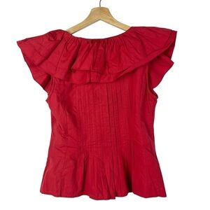 Anthropologie Forever That Girl Petite Red Pleated Ruffle Short Sleeve Top