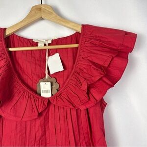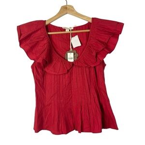Anthropologie Forever That Girl Petite Red Pleated Ruffle Short Sleeve Top SP