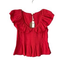 Anthropologie Forever That Girl Pintucked Ruffle Red Blouse Shirt NWTs medium