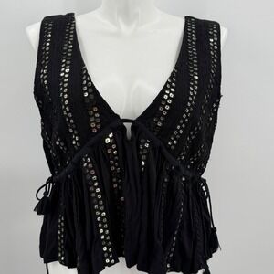 Anthropologie Forever That Girl V-Neck Sequin Embellished Tank Black XL