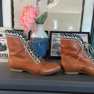 Anthropologie Fortress of Inca Tapestry Trim Brown White Boho Booties Size 8