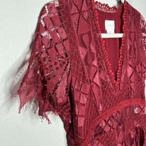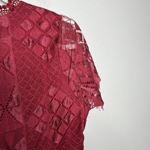 Anthropologie Foxidoe Dress Womens Medium Lace Burgundy Deep V Holiday Party