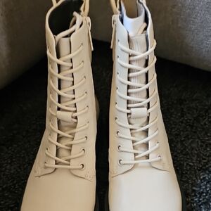 Anthropologie Franco Sarto Ellera Cream Combat Lace-Up Boots Size 6