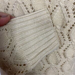 Beautiful vintage inspired Angora blended yarn with lace details on neckline buttons have gold tone detailing. Excellent condition.