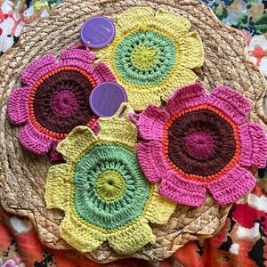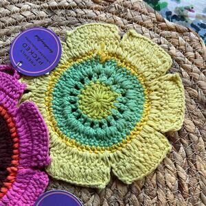 Anthropologie Fresh Picked Crochet Dishcloths Set/4 Flower Coasters Dish Cloths