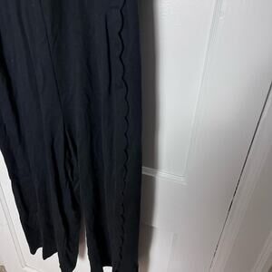 Very good condition - no snags, holes, or stains. Black sleeveless jumpsuit with scallop detailing on the leg. Viscose, nylon, and elastane blend of fabric. Thick knit and stretch throughout. Slightly cropped, wide leg fit. Flowy, flattering top. Smoke free pet friendly home. All offers are welcome.